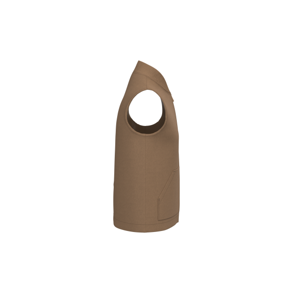 - Ecologische gevoerde uniseks bodywarmer van twill met teddykraag
