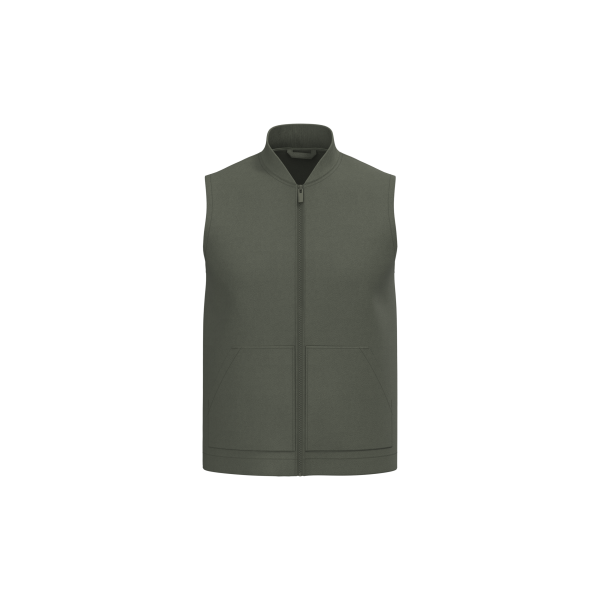 100% biologisch katoen. Gevuld met gerecycled polyester. Rechte snit. Twillstof. Mouwloos jasje opgevuld met gerecycled polyester. Teddykraag in 1x1 ribboord. Kangoeroezak. Sluit vooraan met een plastic rits met een trekker in gerecycled metaal in dezelfde kleur. Ton-sur-ton gewatteerde voering. Binnenzak met klittenbandsluiting, rechts voor de drager. Personalisatiepatch in de hoofdstof met ophanglus aan de binnenkant van het kledingstuk. Drukkersrits op de borst en onderaan.