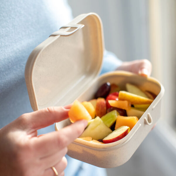 Lunchbox PASCAL S van Koziol is een compacte brooddoos, waarin je gemakkelijk brood en fruit kunt meenemen. Het ideale maatje om mee naar school of kantoor te nemen, of om een uitstapje mee te maken. Met de clip kan de lunchbox stevig worden afgesloten. Twee lunchboxen PASCAL S passen perfect naast elkaar in de grote PASCAL L. Zo kun je verschillende levensmiddelen van elkaar scheiden, terwijl ze toch samen in één doos zitten.