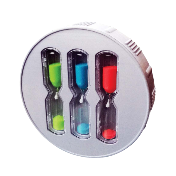 De ShowerTimer 3 Hourglass is een mechanische douchetimer met drie aparte zandlopers in één behuizing. Iedere zandloper heeft een andere looptijd: 4 minuten, 6 minuten en 8 minuten Door een van de zandlopers om te draaien start direct de tijdmeting. Zo kies je eenvoudig de gewenste douchetijd.